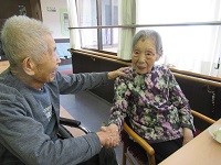 入居者様のW様も「本当に素晴らしいお誕生日だね 102歳なんて素晴らしい」と感激の握手と