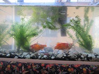 1Fの火鉢の中で飼育していた金魚を