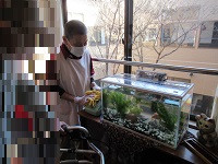 入居者様やスタッフも通りすがりに足を止めて覗いています♪