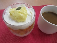 【黒蜜プリン&キャロットケーキ】ペースト食の方【黒蜜プリンカスタード添え】です。