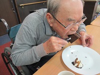 本日の厨房さんお手製のおやつは【ガトーショコラ】とペースト食の方は【プリン&チョコババロア】☆