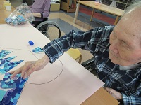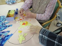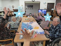 少し 先のイベントに使う 壁面制作を入居者様と一緒に作りました(^^)