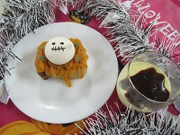 厨房さんが 季節のおやつで かぼちゃのモンブランケーキを手作りしてくれました☆