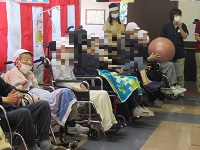 皆さん楽しそうに職員の頭(風船)めがけて叩いていらっしゃいました♡(≧▽≦)