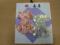 今年の敬老会のお祝い品は 折り紙が得意なスタッフが提案してくれた