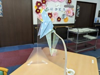 スタッフが 手作りのインコ折り紙を ホールに飾っていました(*^^*)