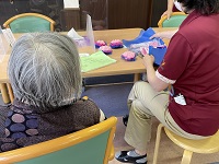 ホールにいらした入居者様とお花紙を使って、花を作っていました。