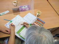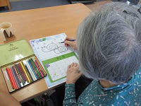 皆さん 真剣な表情で塗り絵に取り組まれています
