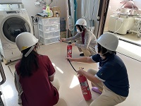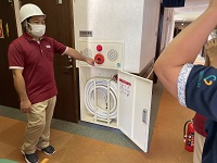 そして、消火訓練へ。手順をしっかり確認しながら行っていきます。