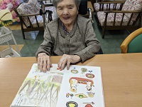 今日は、おやつまでの時間を利用して数名の入居者様に10月分の塗り絵カレンダーに挑戦して頂きました。