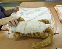 おしぼり畳しながら入居者様と相談員が 笑い転げる猫のおもちゃで遊んでいました(*^^*)