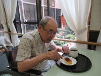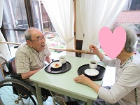 天気も良かったので中庭を眺めながらおやつタイムをしましょう♡とケアマネがお声がけして