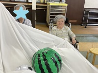 皆さんシーツをしっかりと持ってボールが落ちないように パタパタと動かします☆