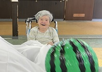 ボールが落ちてしまいスタッフが「あぁ~」と残念がるとなぜか笑顔の入居者様☆