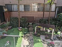 プランターのお花を配置しました☆ メディス川越は中庭が広いので たくさんお花を置いても