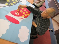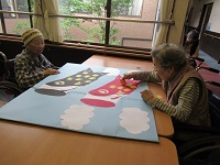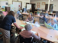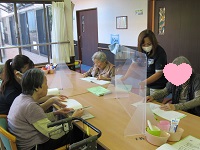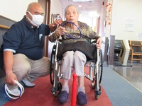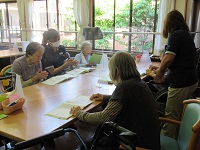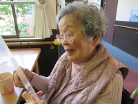 先日の母の日レクで撮ったお写真を入居者様にもお見せして