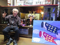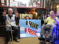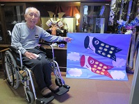 入居者様と手作りした🎏鯉のぼりと玄関の兜飾りで記念撮影をしました☆