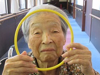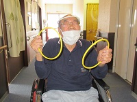 スタッフも入居者様も勢いに乗ってもう「5/100 輪投げ」です!(^^)!