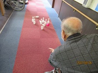 「え~やった事ないよぉ~」なんて渋々ホールに出てきた入居者様…