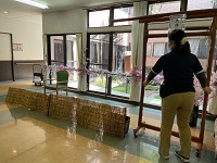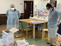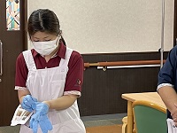 今月は看護師が 感染対策としてガウンテクニック・手袋の着脱