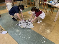 食中毒予防で 吐しゃ物の処理の仕方を講習してくれています☆