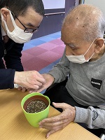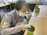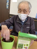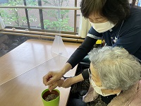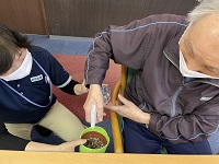 さっそく入居者様と一緒にプランターに植えてみました☆