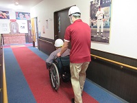 入居者様にも密にならないようお一人ずつ誘導して、避難場所まで避難して頂きました。