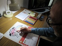 1月のカレンダー塗り絵を入居者様が仕上げていらっしゃいます!(^^)!