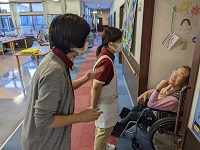 笑顔でお散歩に出かけられる入居者様を見るとスタッフも