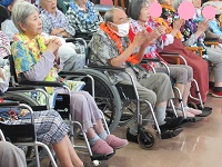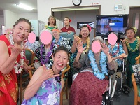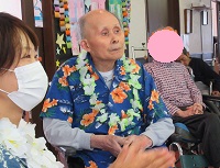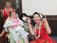 入居者様もアロハシャツやレイを付けてお迎えしました☆