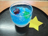 季節のおやつはカルピスゼリーの上にサイダーゼリーをのせて、こちらも星型のゼリーをトッピングした