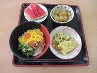 今年もそうめんにお星さま人参をのせて錦糸卵で彩りも良いランチメニューとなりました♬