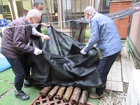 なんとか横積みにしてその上から遮光ネットをかけ、重しをして完了です。