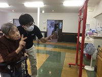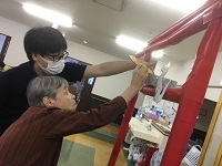 この日は、グループ施設のメディス越谷蒲生で勤務しているリハビリの先生に、TANOという機器を使って特別な体操を行ってもらいました。