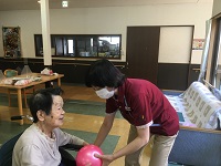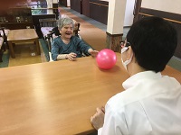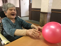 今日は1階の方数名とボール遊びを行っております。