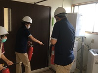 消火器を持って初期消火にあたります。