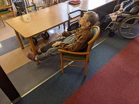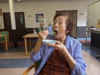 今日はとっても笑顔で体操している入居者様を見つけたので