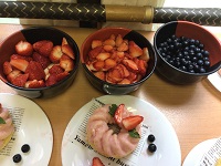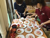 レク担当スタッフが 飾り付けをしたプレートはいちごをメインにした素敵な