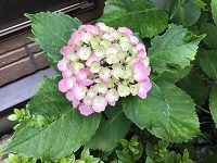 施設内の装飾が徐々に6月仕様に変化していくなか、中庭の紫陽花も「花」をつけました!!