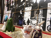 メディス川越の🐸さんも お友達と切り絵を見上げて鑑賞中です♡