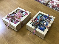 色とりどりのお花や貝殻の入ったBOXをご覧になって「きれいね~」と☆