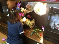 1階ホールで飾られた中庭や名所の桜の動画を見ながらゆったりしたひと時をお過ごし頂きました。