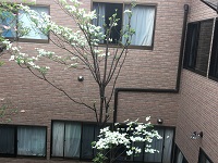 今年も中庭のハナミズキが花を咲かせましたよ♪