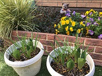 鉢植えは入居者様が 植えたムスカリとチューリップも