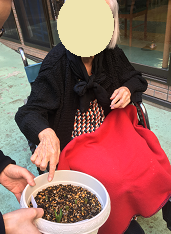 植えて頂いた入居者様をお誘いし、中庭へ。