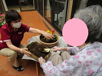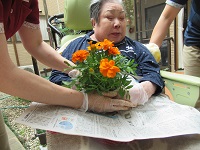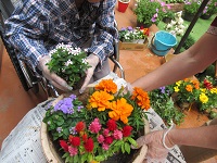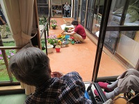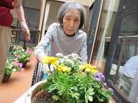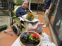 先日入居者様と植えたガーデニング鉢