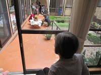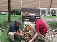 中庭でケアマネさんが準備中☆