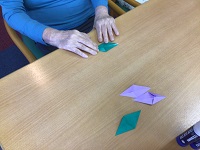 折り紙を四等分に切ったもので折るのでちょっと難易度が上がります(;’∀’)