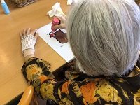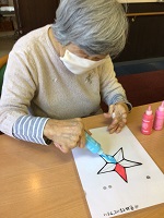 今日は、来月のクリスマスに向けて入居者様に装飾を作って頂きました。