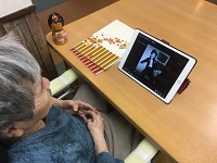 はじめは、ipadに何が映っているのか分からないようでしたが、ひばりさんだと分かると手を嬉しそうに画面のほうに・・・。